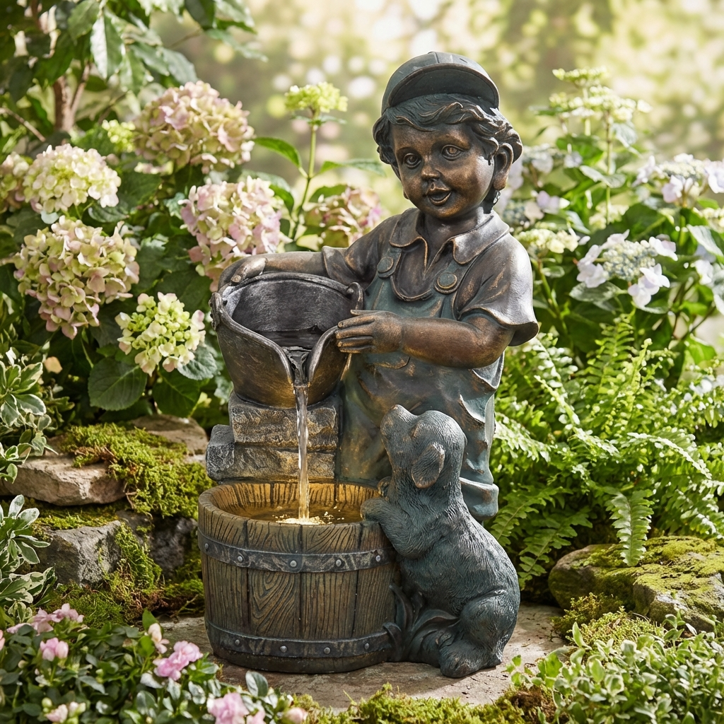 Fontaine de Jardin Le Petit Jardinier et son Chien – Charme et Sérénité
